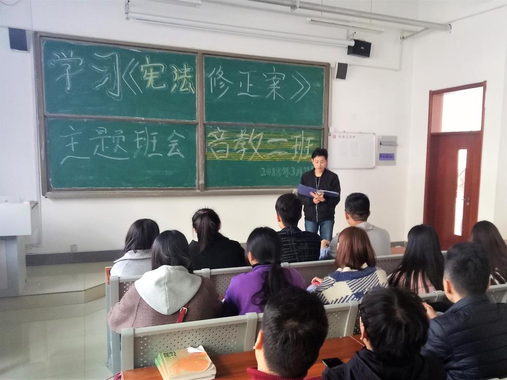 为深入开展宪法教育,大力弘扬宪法精神,切实增强宪法意识,2018年3月21日下午,音乐与舞蹈学院组织各班级集中开展“学习宪法 尊崇宪法”主题团日活动。