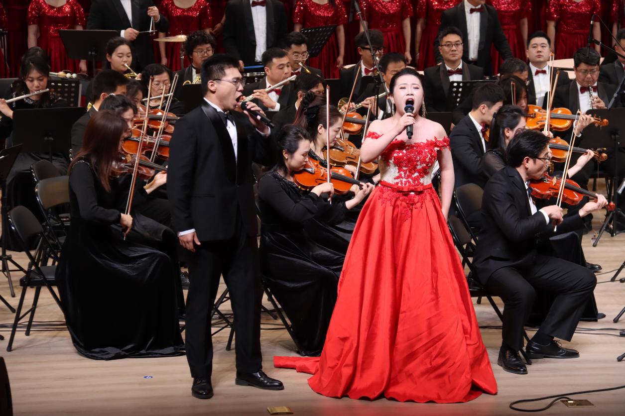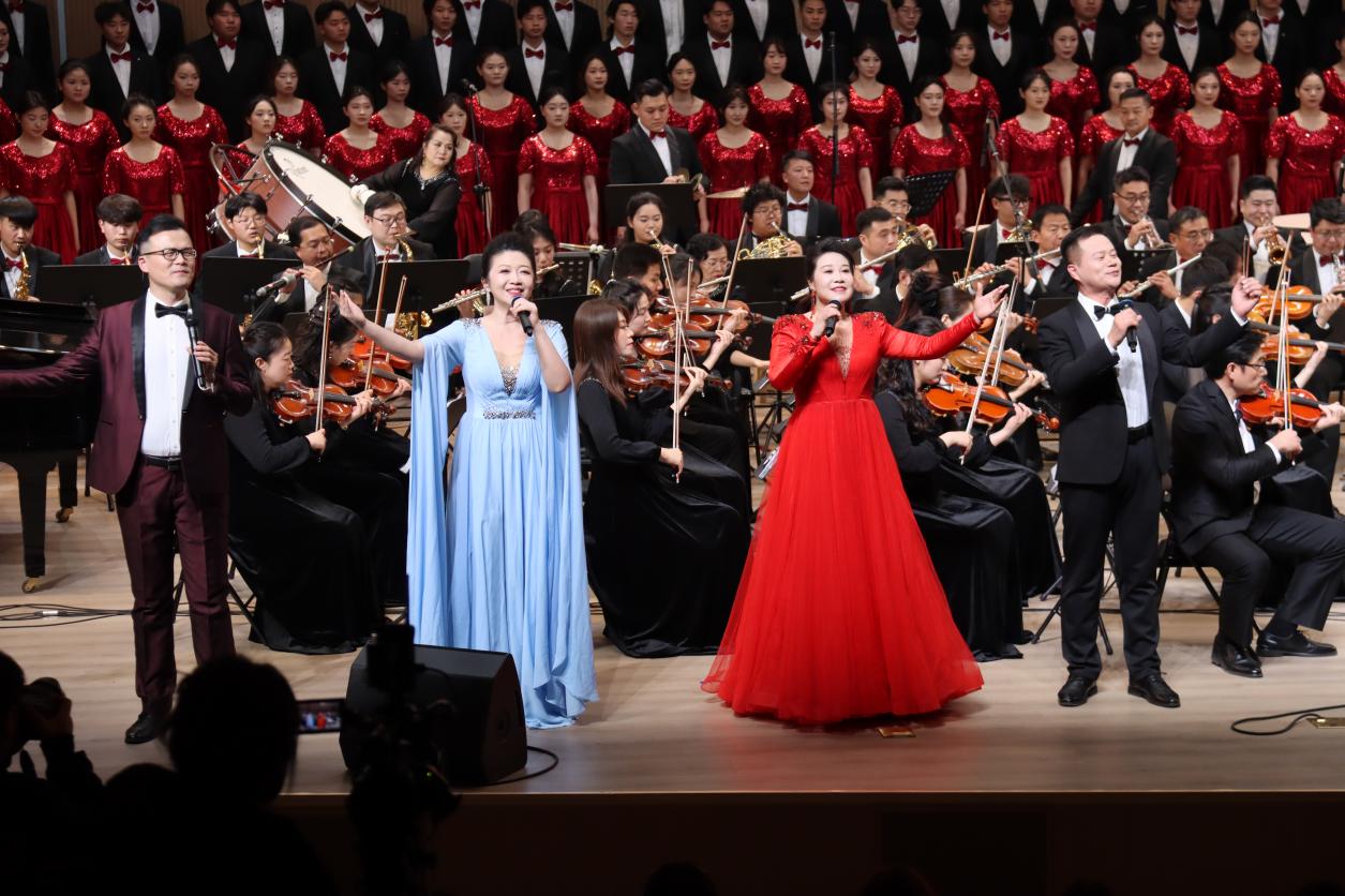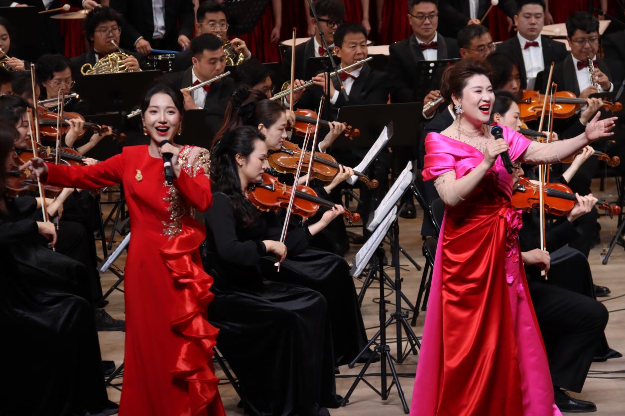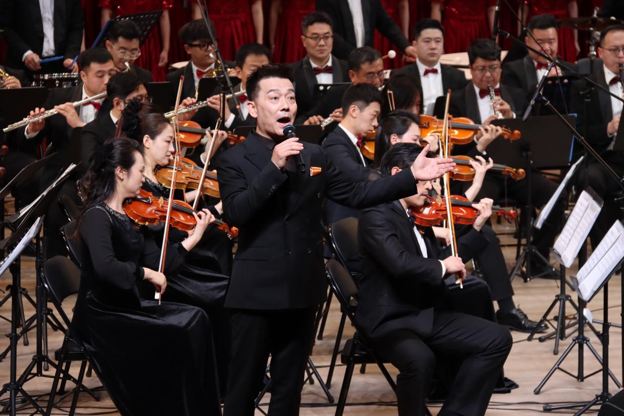 第三篇章 “共筑辉煌” 汇聚中外经典,传递奋进力量。《我的太阳》高亢明亮的旋律、《匈牙利舞曲第五号》的异域风情、《饮酒歌》的轻快热烈、《康康舞曲》的活泼诙谐,展现了音乐艺术的多元魅力。压轴上演的交响合唱《黄河大合唱》第七乐章《保卫黄河》,以磅礴气势再现了中华民族无所畏惧的抗争气魄,奏响了民族复兴的时代强音;《歌唱祖国》将现场气氛推向高潮,激昂的旋律中饱含着对祖国的热爱与对未来的憧憬,整场音乐会在《拉德茨基进行曲》的欢快旋律中落下帷幕。