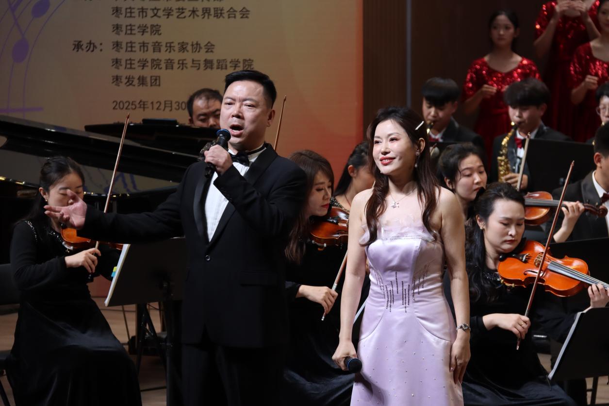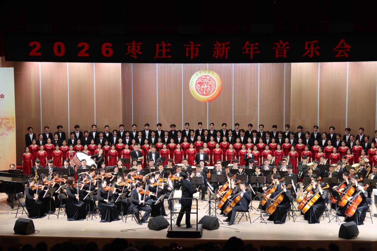 12月30日,辞旧迎新启华章,歌声飞扬颂家乡,2026枣庄市新年音乐会在枣庄学院成功举办。整场音乐会以激昂的旋律、深情的演绎,回顾荣耀征程,歌颂璀璨当下,展望未来辉煌图景,为现场观众带来了一场兼具艺术感染力与枣庄情怀的视听盛宴。
